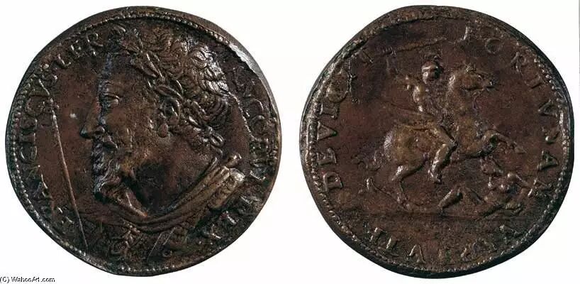 当时没有照相机,上网也不方便。幸亏两年前,另一个意大利铸币家和雕刻家本韦努托·切利尼(Benvenuto Cellini)为法国国王弗朗索瓦一世镌刻过一枚铜币。在这枚铜币上有国王面部的高清无码大图。